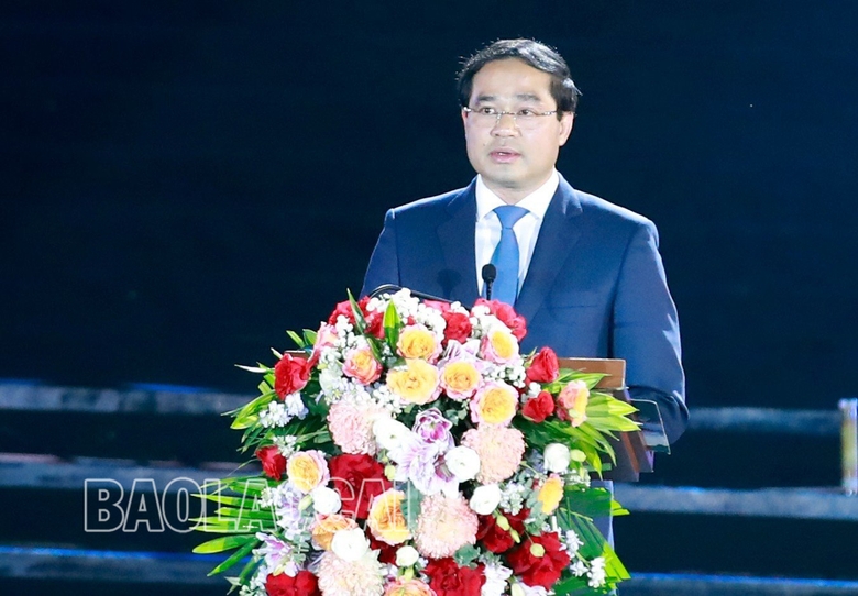 Chủ tịch UBND tỉnh Lào Cai Trịnh Xuân Trường phát biểu tại lễ khai mạc (Ảnh: Báo Lào Cai)