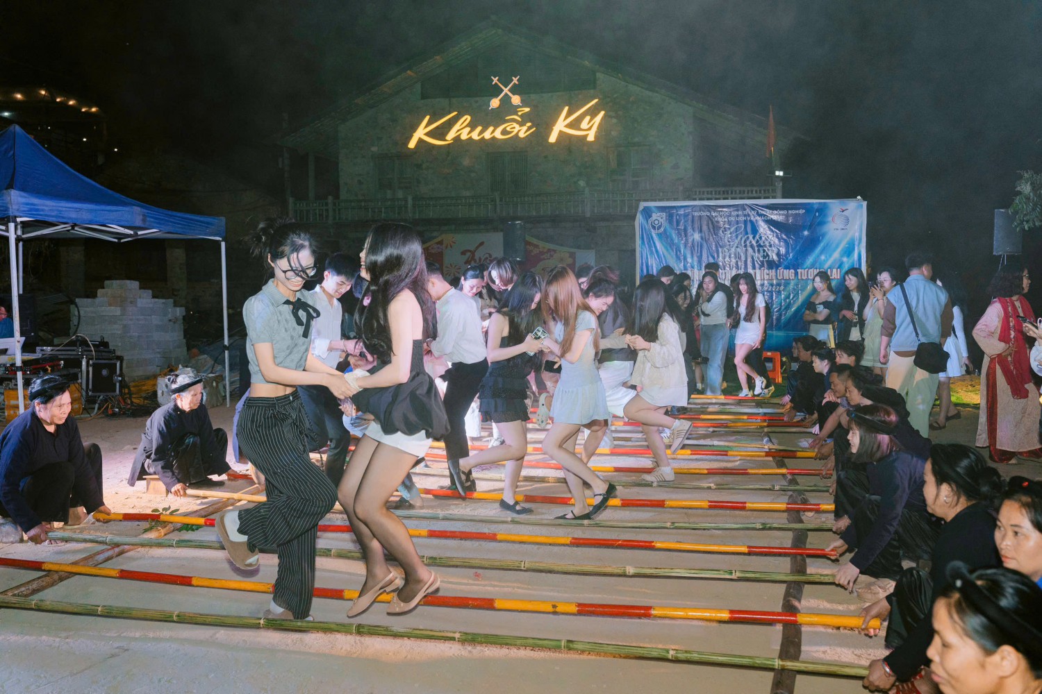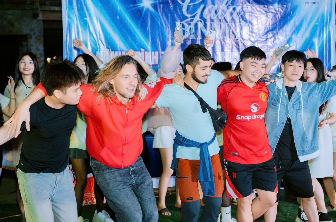 Không khí được đẩy lên cao trào khi thầy trò UNETI, bà con dân bản và những người bạn ngoại quốc cùng nắm tay nhau, cười rạng rỡ hòa nhịp vào điệu nhảy sạp truyền thống và lửa trại.