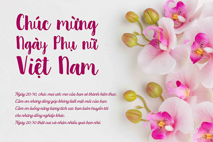 Chủ tịch Hồ Chí Minh đã từng nói: “Giang sơn gấm vóc Việt Nam là do phụ nữ Việt Nam, trẻ cũng như già, ra sức dệt thêu mà thêm tốt đẹp, rực rỡ”. 20/10 - một ngày đặc biệt đã ra đời để chúng ta cùng chúc mừng phụ nữ đã cống hiến thầm lặng, góp phần làm cho mọi khoảnh khắc trong cuộc sống này ngọt ngào và trọn vẹn hơn bao giờ hết! Phụ nữ Việt Nam hiện đại đã không còn chỉ là phái đẹp, mà họ ngày càng nắm giữ nhiều vị trí quan trọng trong công cuộc dựng xây đất nước.