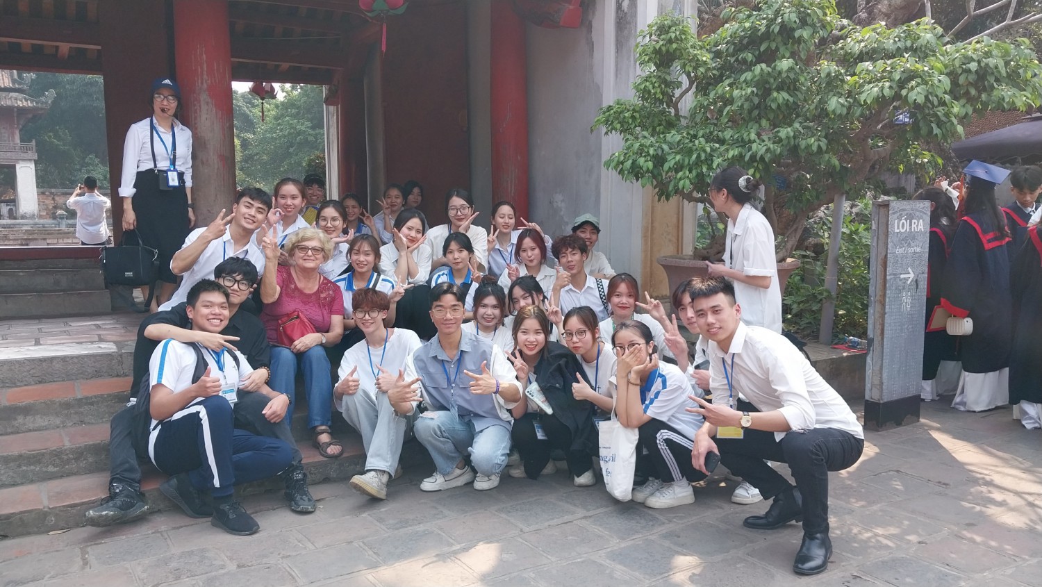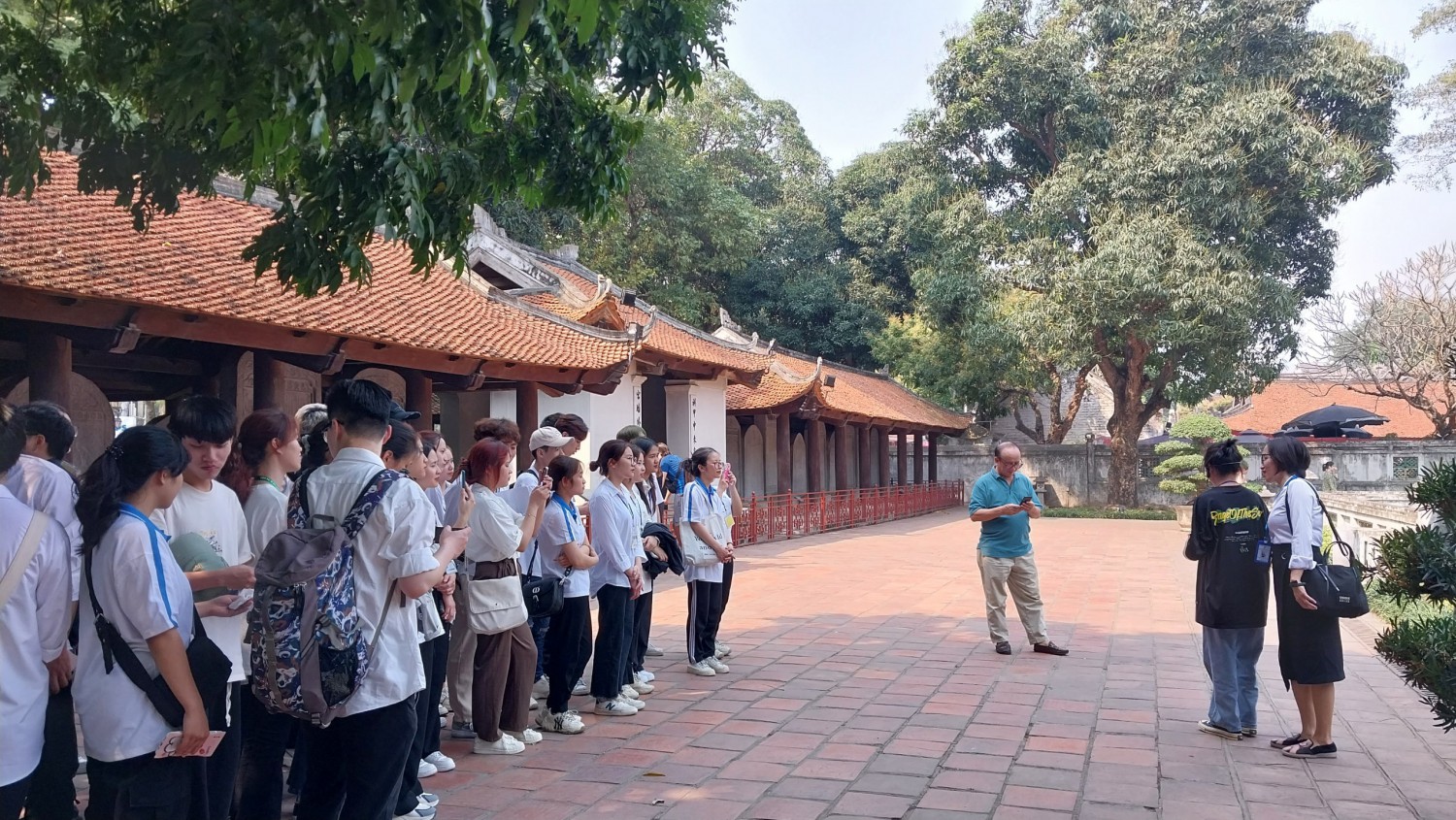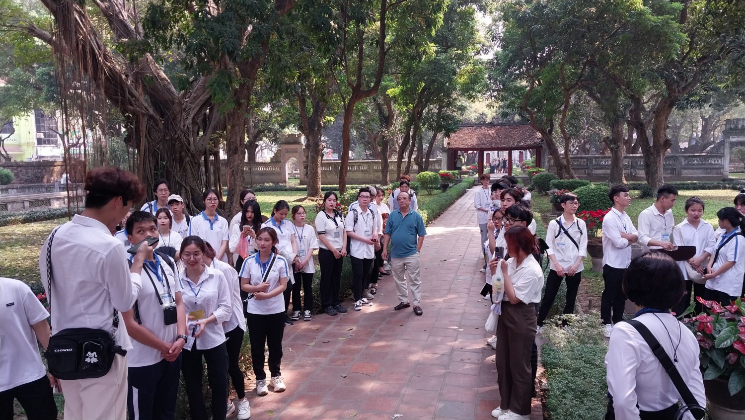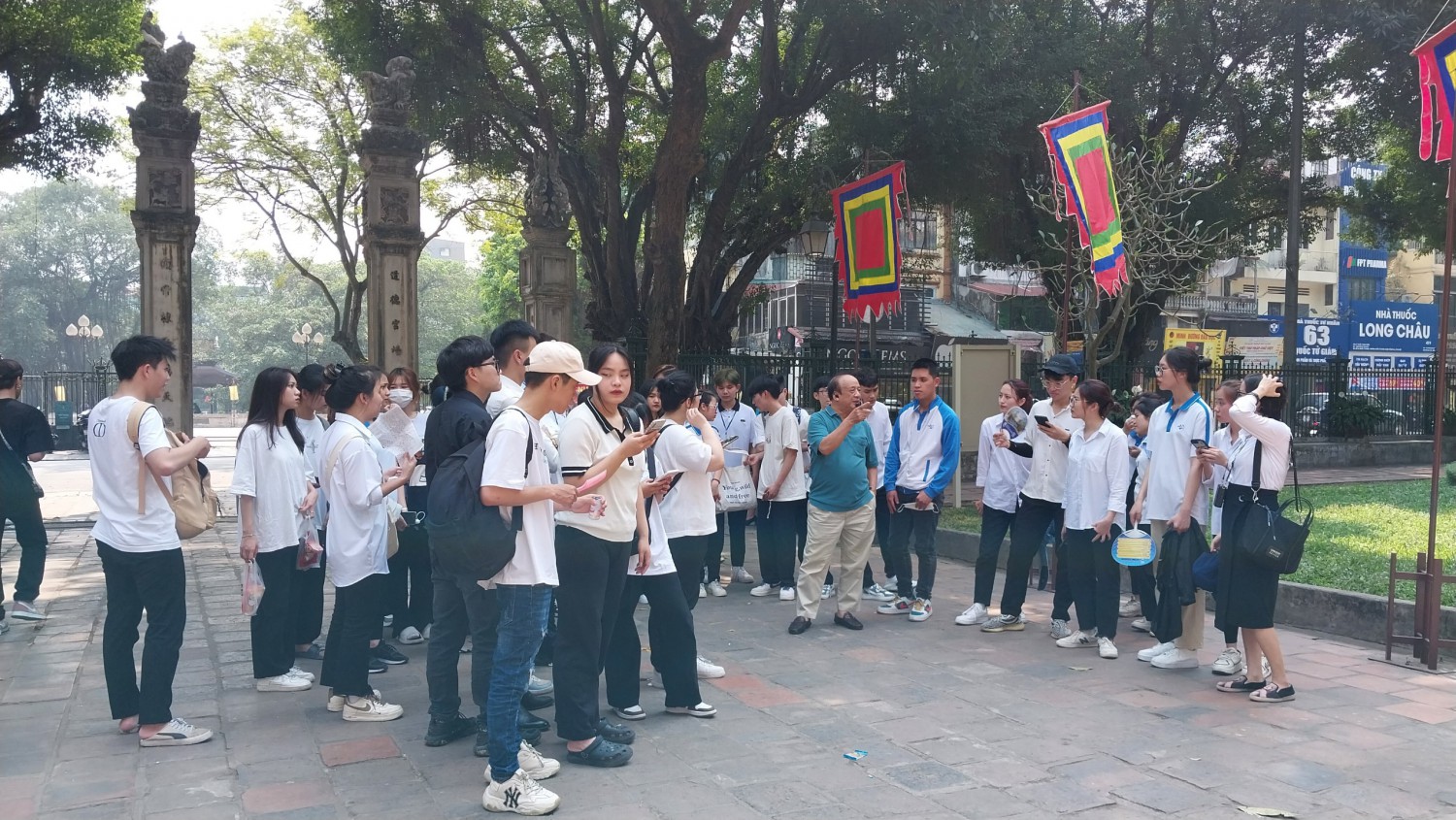 Trước khi thực hành các nghiệp vụ hướng dẫn du lịch, các bạn sinh viên lớp ĐHDL15A2HN đã được nghe PGS.TS Lại Phi Hùng chia sẻ về ý nghĩa lịch sử của Văn Miếu - nơi chứng kiến và lưu dấu chặng đường phát triển của giáo dục Đại Việt, là khu di tích lịch sử văn hóa quảng bá những giá trị văn hóa Việt Nam đến với bạn bè quốc tế.